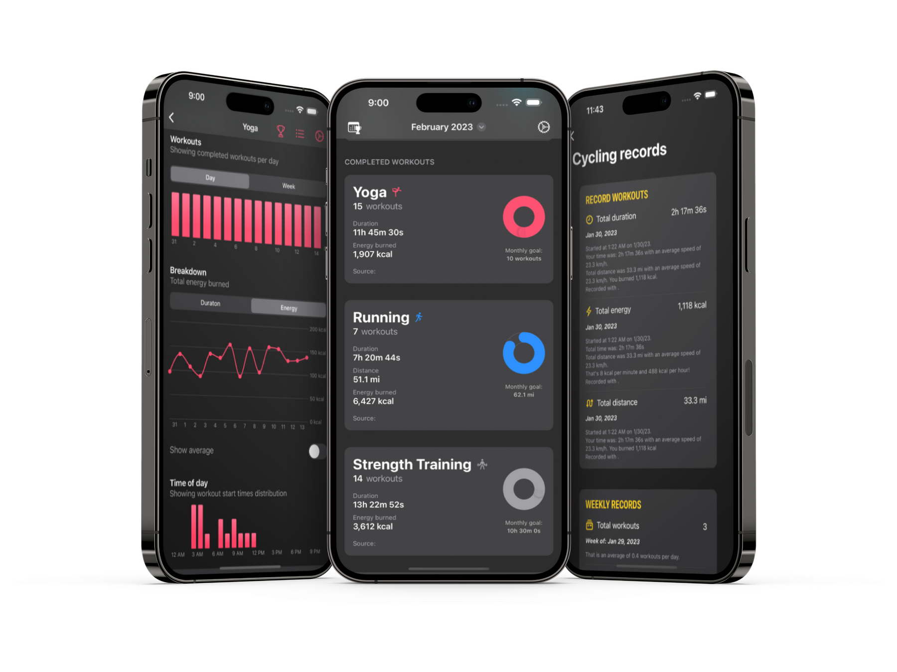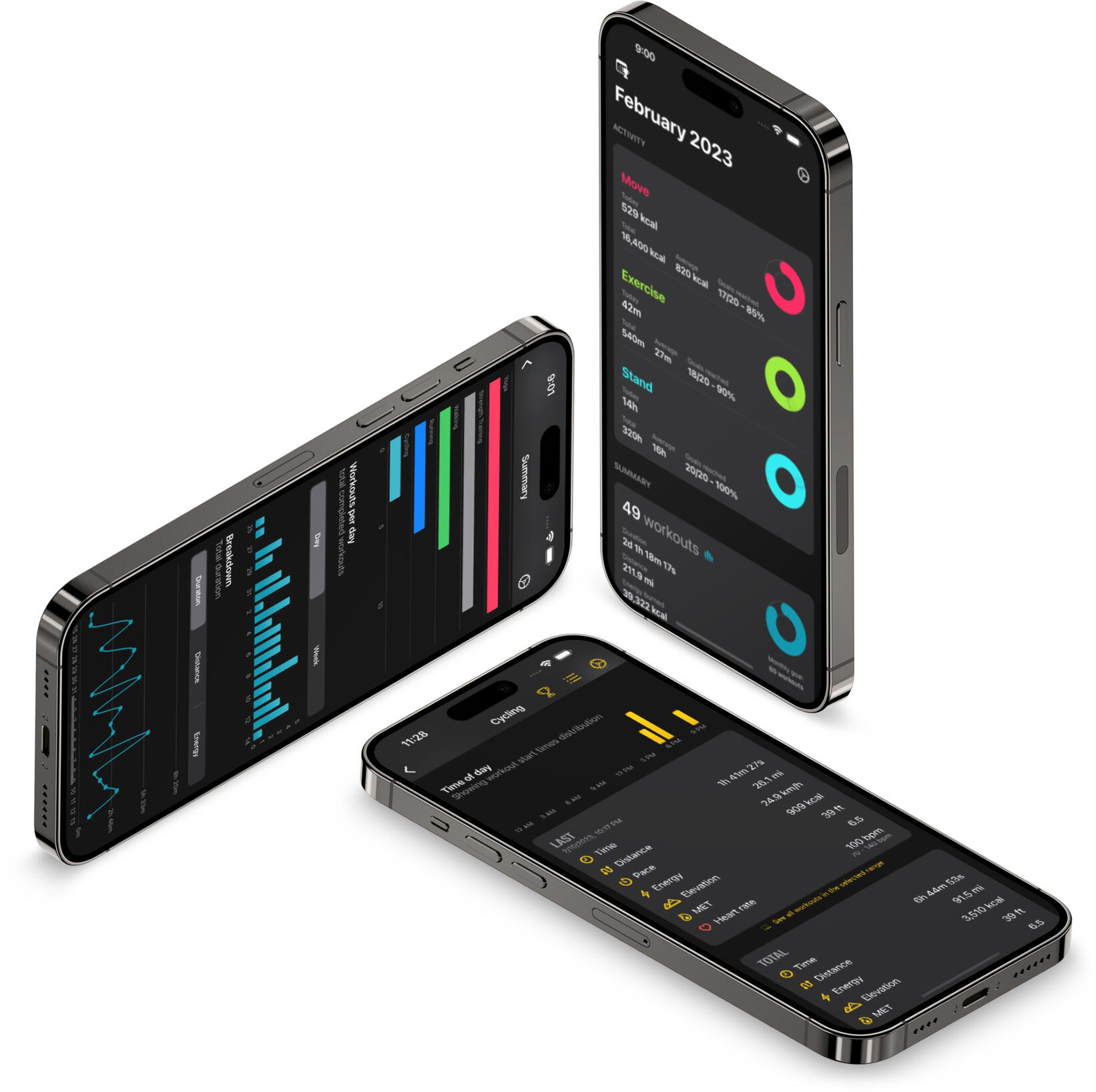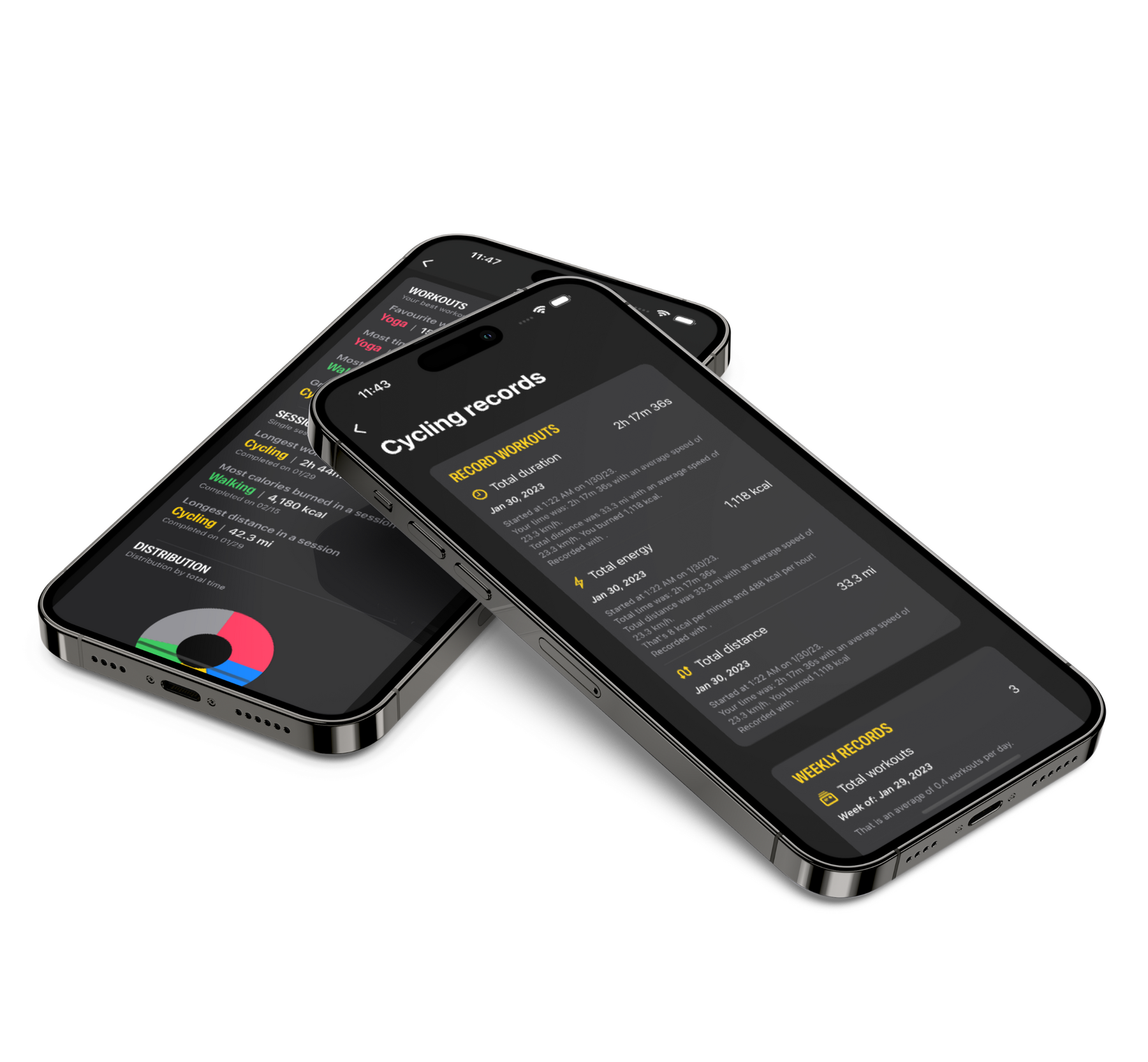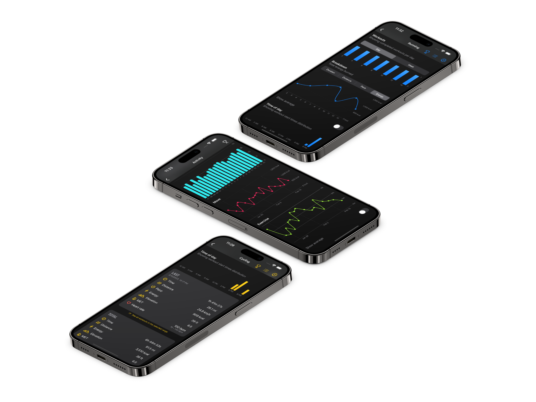 Get a clear picture of your progress with eye-catching graphs and charts. From duration to energy, distance to speed, heart rate to weather, and more, we've got you covered.
